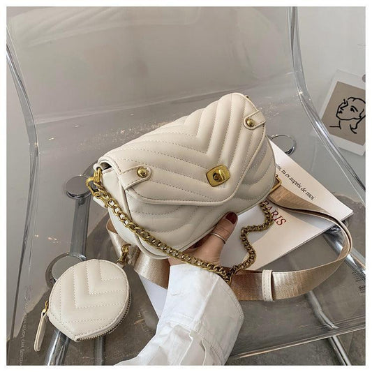 Women's Quilted Shoulder Bag With Adjustable Strap And Matching Purse