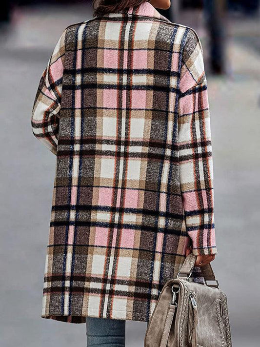 Women's Double Breasted Mid Length Button Closure Coat With Pockets