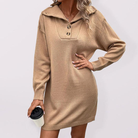 Women's Fine Knit Button Collared Loose Fit Jumper Dress