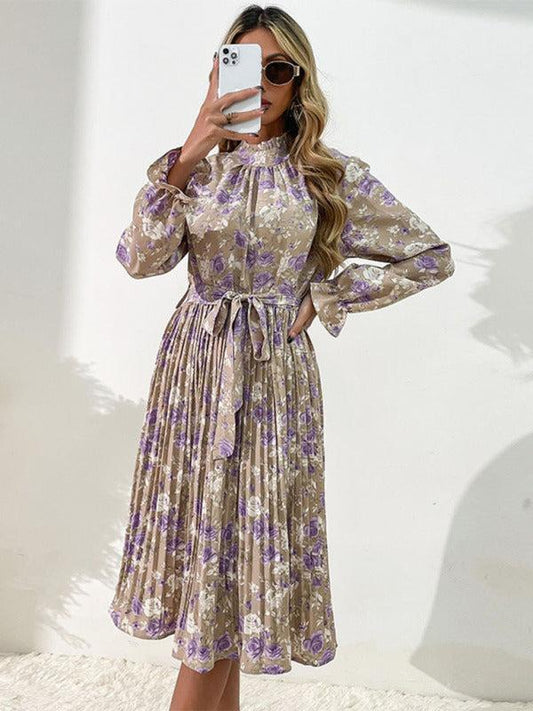 Women's Dolman Sleeve V-Neck Vibrant Print Ruffle Dress