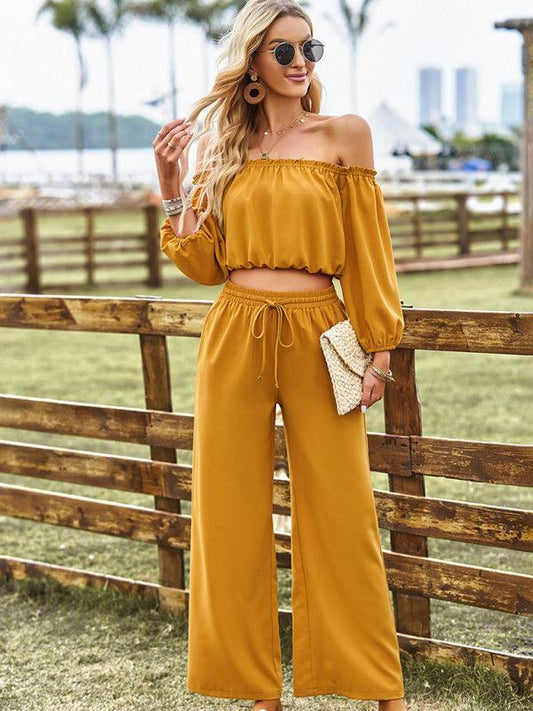 Women's Off The Shoulder Gypsy Top And Trousers Coord Set