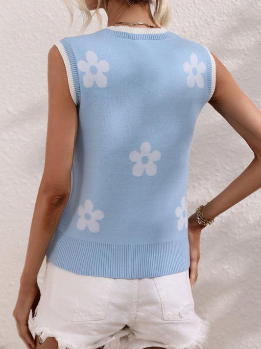 Women's Subtle Flower Print V-Neck Knit Tank Top