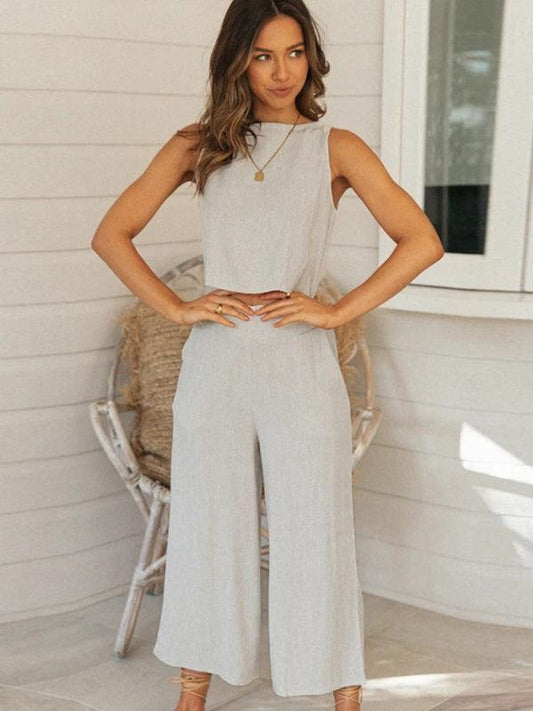 Women's Casual Tank Top With Matching Wide Leg Trousers