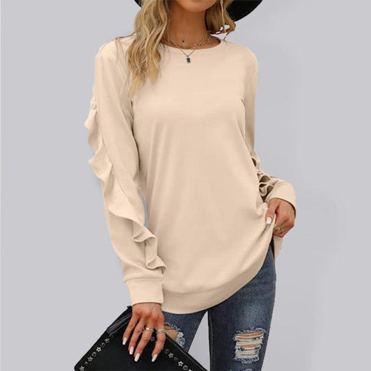 Women's Casual Round Neck Jumper With Pleated Long Sleeves