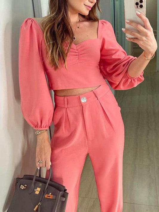 Women's Chiffon Crop Blouse With Matching Trousers