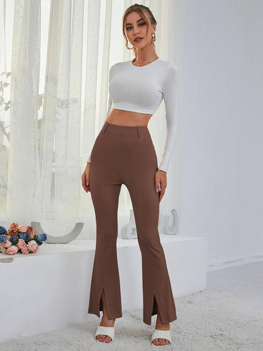 Women's High Waist Flared Trousers With Front Hem Splits