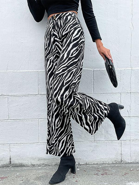 Women's Wide Leg Zebra Print Trousers